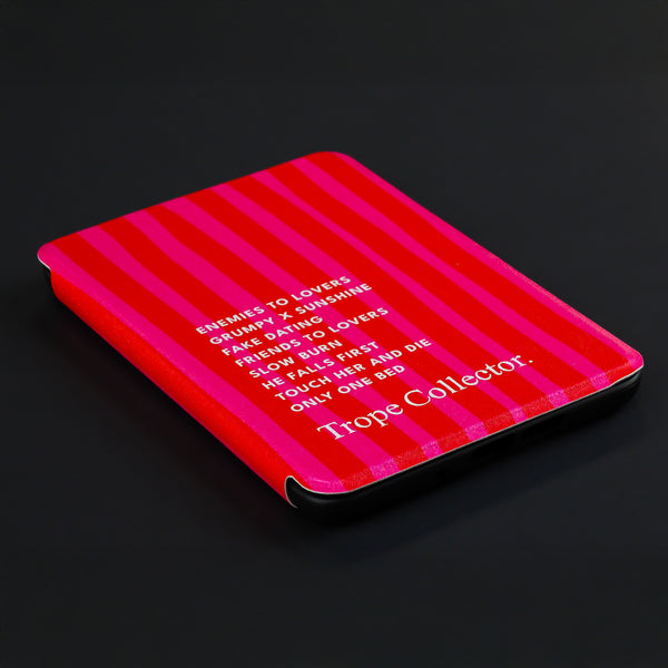 Das pink-rote Colorblock-Design mit typografischer Trope-Liste macht deinen E-Reader zum echten Statement-Piece – perfekt für jedes Kapitel, das du nicht mehr aus der Hand legen kannst. #treatyourkindle